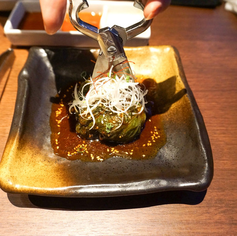 そしてワタシの大好きな上ミノはとても新鮮なので軽く焼いてサクッとした歯応えを塩味で。ハラミはわさびソースとかんずりでさっぱりと。
